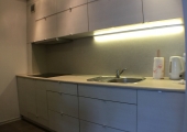 Aneks kuchenny jest w pełni wyposażony. W jego skład wchodzą: kuchenka, lodówka, czajnik elektryczny, zastawa stołowa, komplet garnków oraz sztućce.