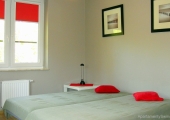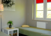 W pierwszej są dwa łóżka pojedyncze, które w miarę istniejących potrzeb można rozstawić lub zestawić, stolik nocny oraz lampa. Tu jest też duża szafa, w której zmieszczą się wszystkie Państwa rzeczy oraz bagaże.