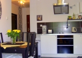 Na wyposażeniu aneksu kuchennego jest: kuchenka z płytą ceramiczną dwupalnikową, lodówka zabudowana, czajnik elektryczny, toster, ekspres do kawy, komplet garnków, zastawa stołowa oraz sztućce.