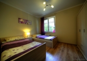 W drugiej sypialni mamy dwa oddzielne łóżka, stolik nocny z lampką, Tu jest umiejscowiona także duża szafa, która pomieści wszystkie Państwa rzeczy.
