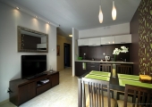 Bardzo ładnie urządzony, apartament. Położony jest na I piętrze w nowym trzypiętrowym budynku. W budynku jest winda, tak więc nie ma problemu z wygodnym i szybkim dostaniem się do mieszkania.