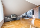 Ładnie oraz nowocześnie urządzony dwupoziomowy apartament, składający się z trzech pokoi oraz dwóch łazienek po jednej na każdym poziomie. Położony jest on na IV piętrze w czteropiętrowym budynku z windą. W pobliżu znajdują się sklepy oraz przystanek niemieckiej kolejki „UBB”