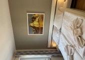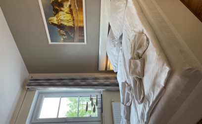 Apartament jest urządzony tak, że zapewnia komfort oraz wygodę osobom w nim przebywającym. Składa się on z jednej sypialni, w której jest duże łóżko małżeńskie z materacami ortopedycznymi, stoliki nocne oraz lampki. Tu jest duża szafa zabudowana, w której zmieszczą się wszystkie Państwa bagaże.