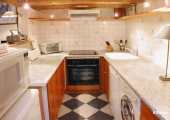 Kuchnia jest w pełni wyposażona. W skład jej wchodzą: toster, ekspres do kawy, czajnik elektryczny, kuchnia elektryczna wraz z piekarnikiem, kuchenka mikrofalowa, pralko-suszarka, lodówka, zmywarka, sztućce oraz naczynia.